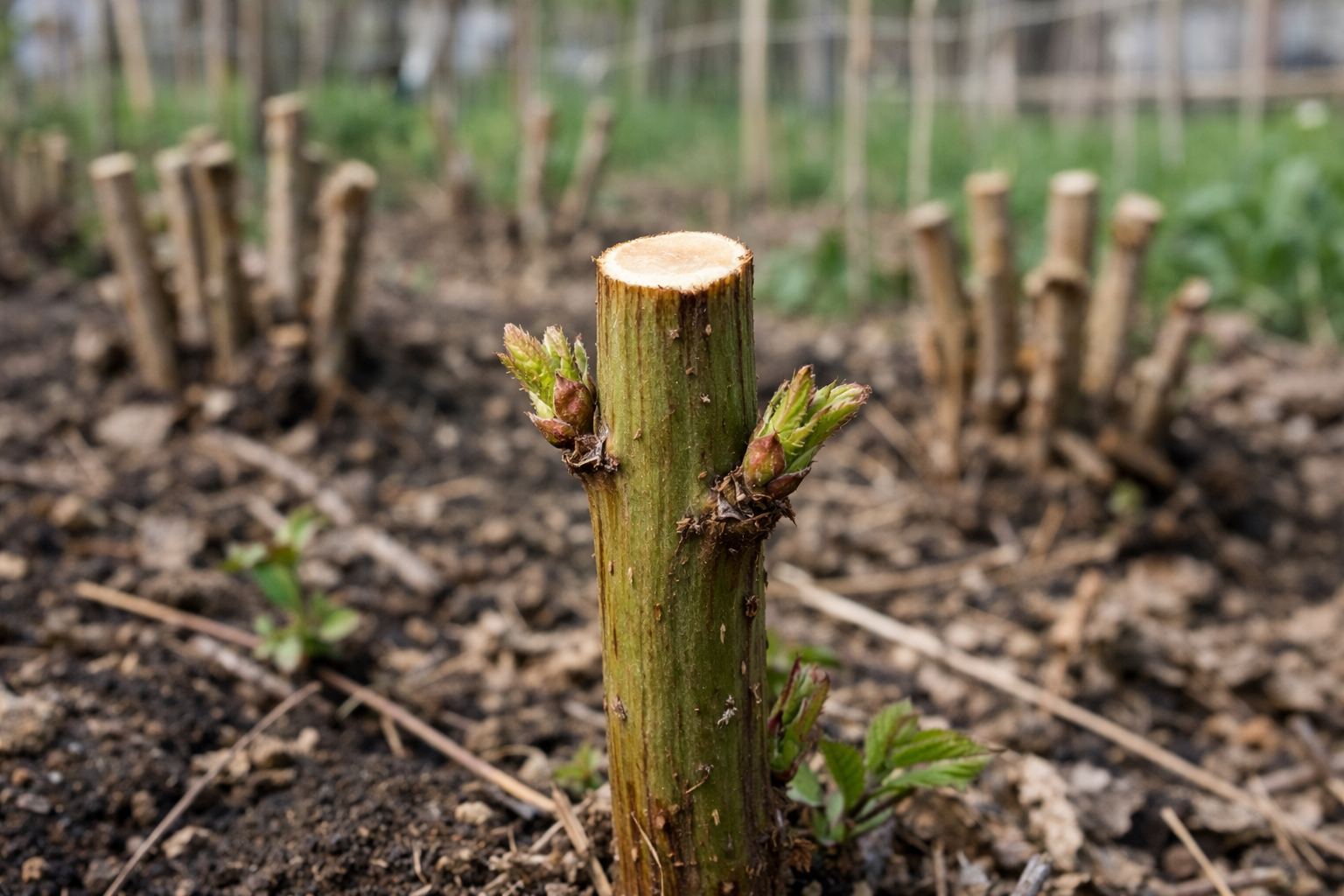 Az oldalhajtásokat óvatosan, körülbelül tizenöt centiméterre kell visszavágni az első egészséges rügyig.
