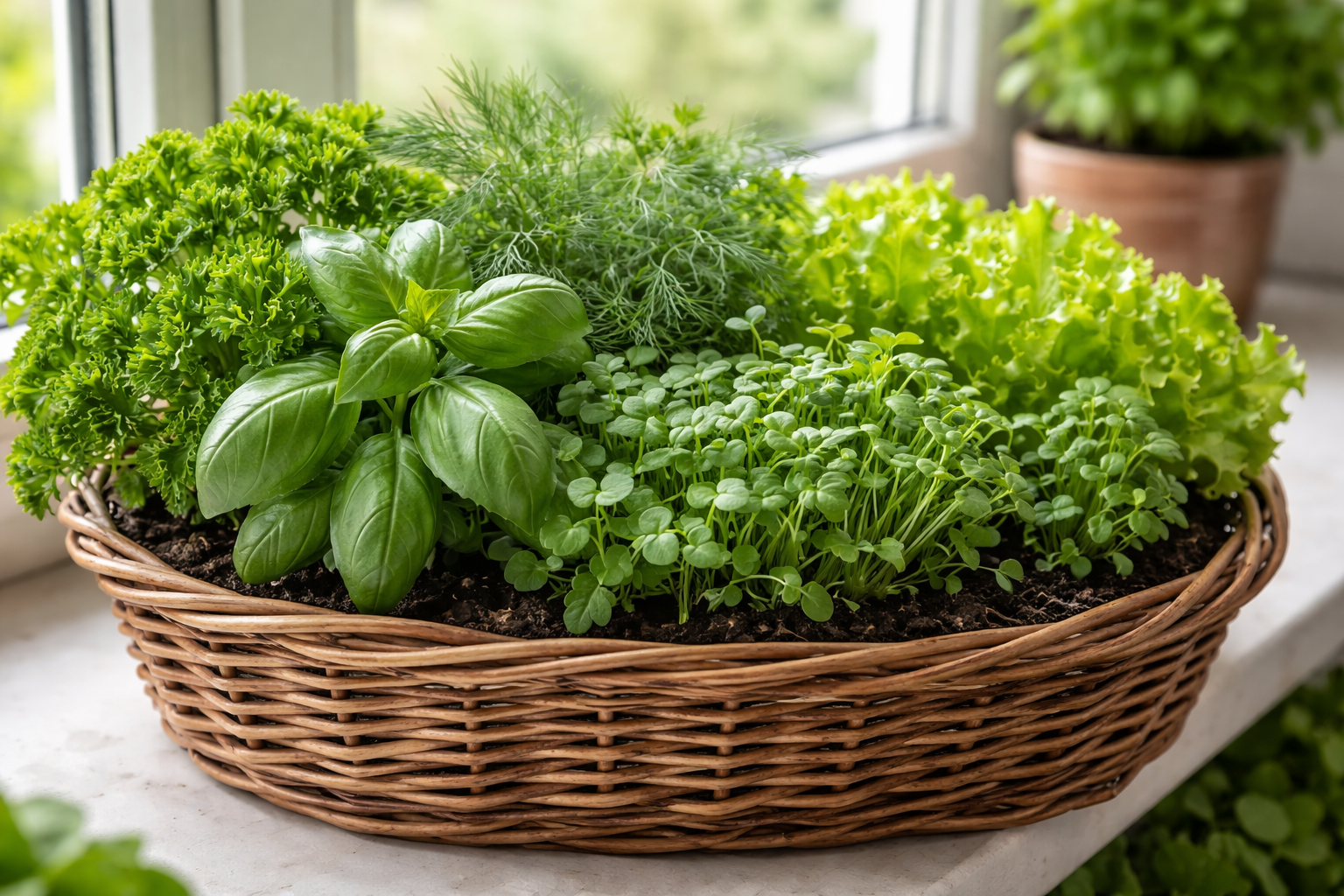 Egy erős bazsalikom- vagy petrezselyembokor kialakulása körülbelül másfél hónapig tart, ha a hőmérséklet stabil és elegendő fény áll rendelkezésre.