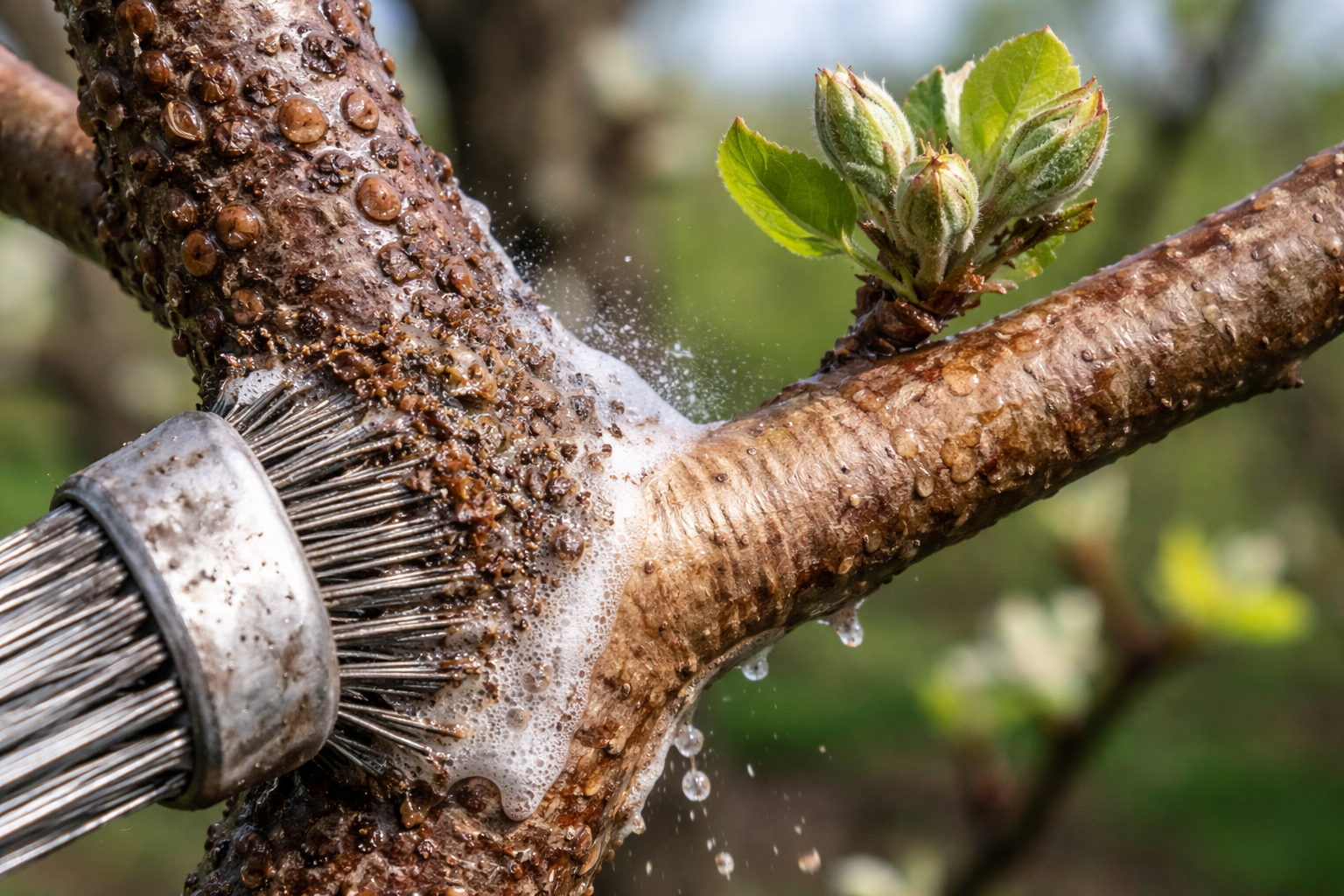 Az eredmény megszilárdításához szükséges egy második permetezés elvégzése a rügyfakadás fázisában, már szisztémás hatású készítményekkel. Ezek felszívódnak a levélszövetbe, és megbízhatóan védik a fiatal fát az aktív növekedés időszakában.