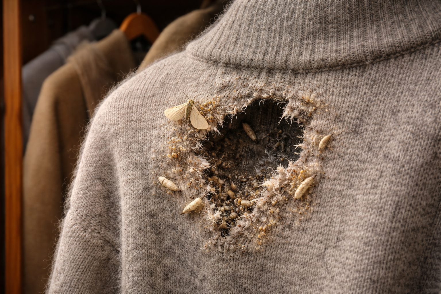„Kedvező körülmények között a lárvák mindössze két-három nap alatt képesek észrevehető lyukat rágni a finom kasmírba.”
