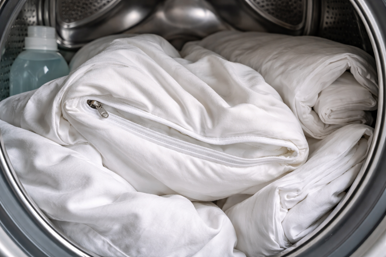 A hosszú élettartam legfőbb titka abban rejlik, hogy a paplanhuzatot kifordítjuk és felhúzzuk a cipzárral – így a nyomtatás fényes marad, és a gépdobot megóvjuk a hardver ütéseitől.
