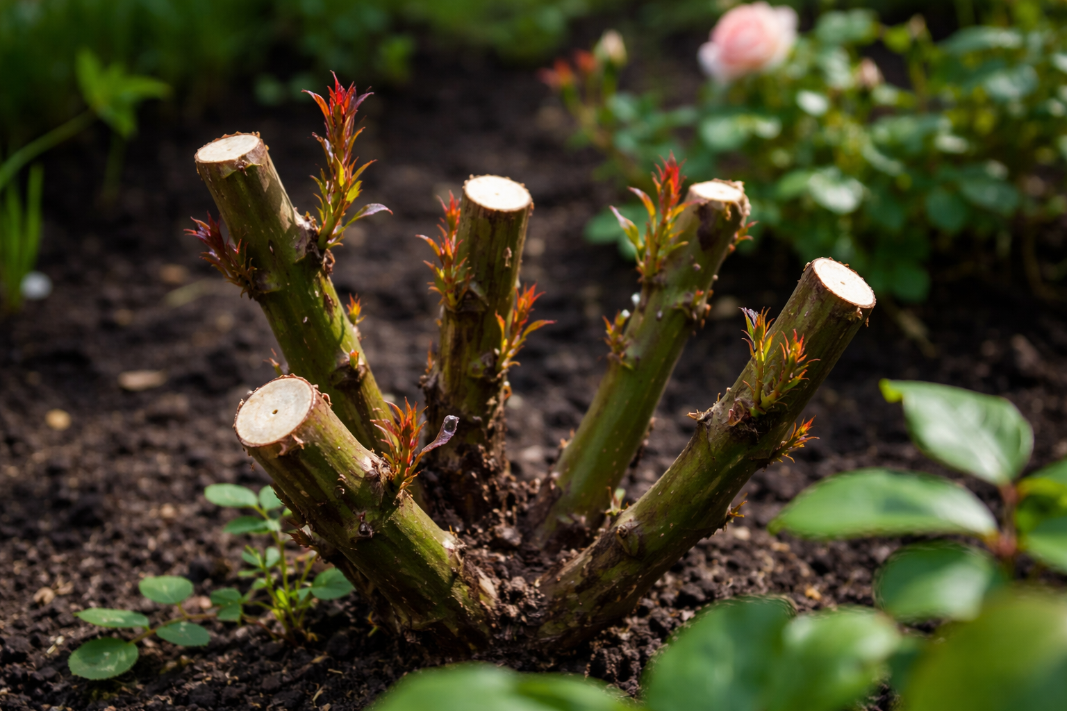 A fényűző rózsakert legfőbb titka a fakivágás kíméletlenül, mert a rózsa genetikailag állandó megújulásra van programozva, és az öreg, vastag szárak csak elvonják a növény életnedveit.