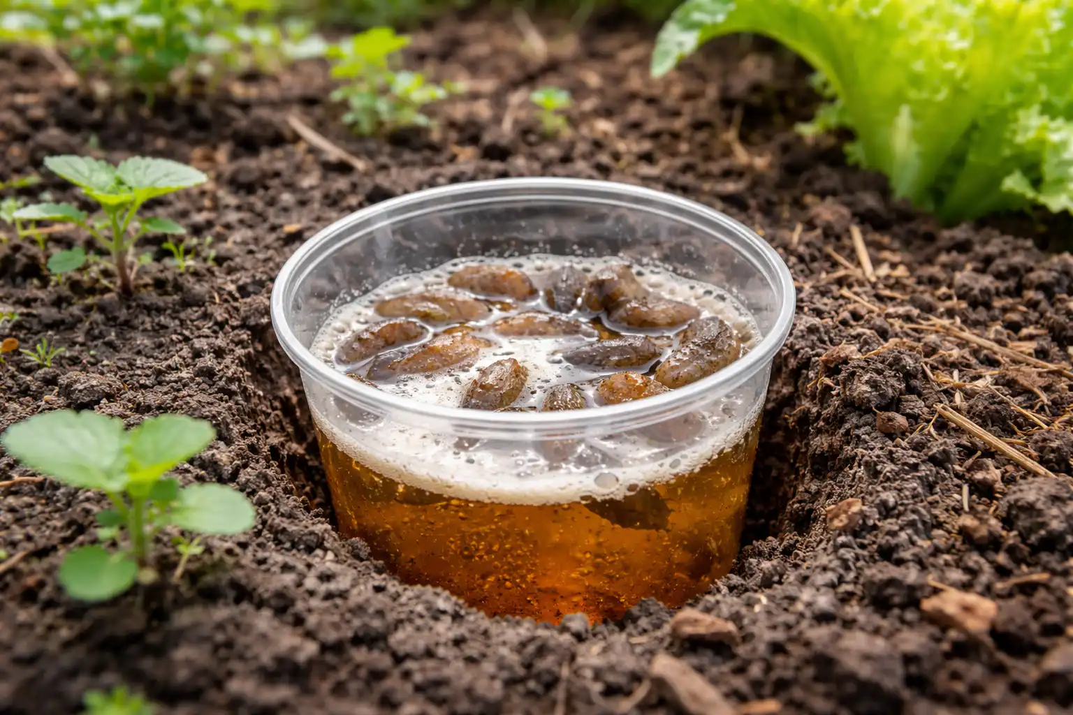 Ügyeljünk arra, hogy a pohár pereme néhány centiméterrel a talaj fölött maradjon, hogy egy földi varangy vagy hasznos kerti bogár véletlenül se essen bele a folyadékba.