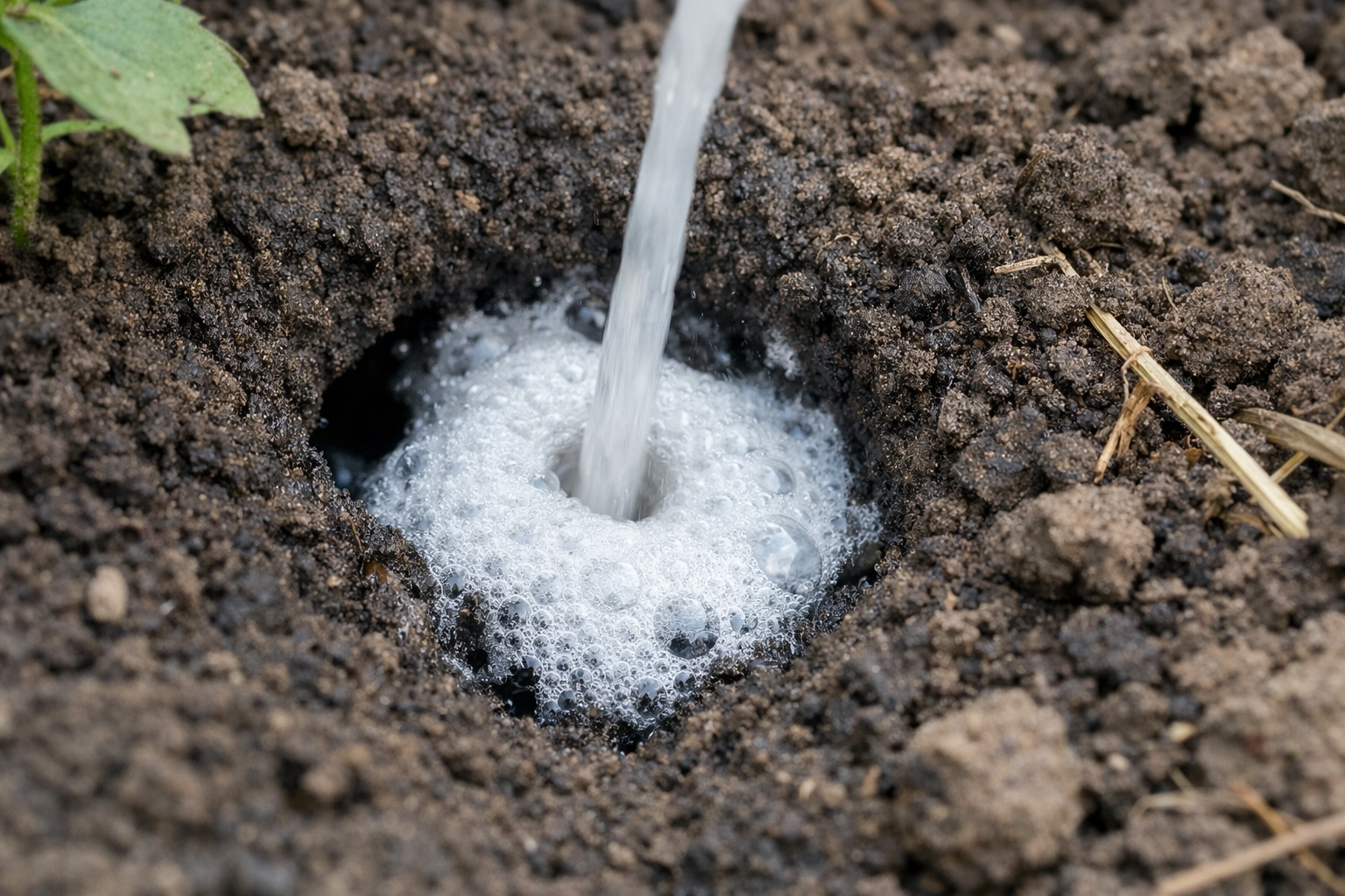 A kultúrnövények gyökerei teljesen biztonságosak maradnak, ha óvatosan közvetlenül az üregrendszerbe fecskendezik.