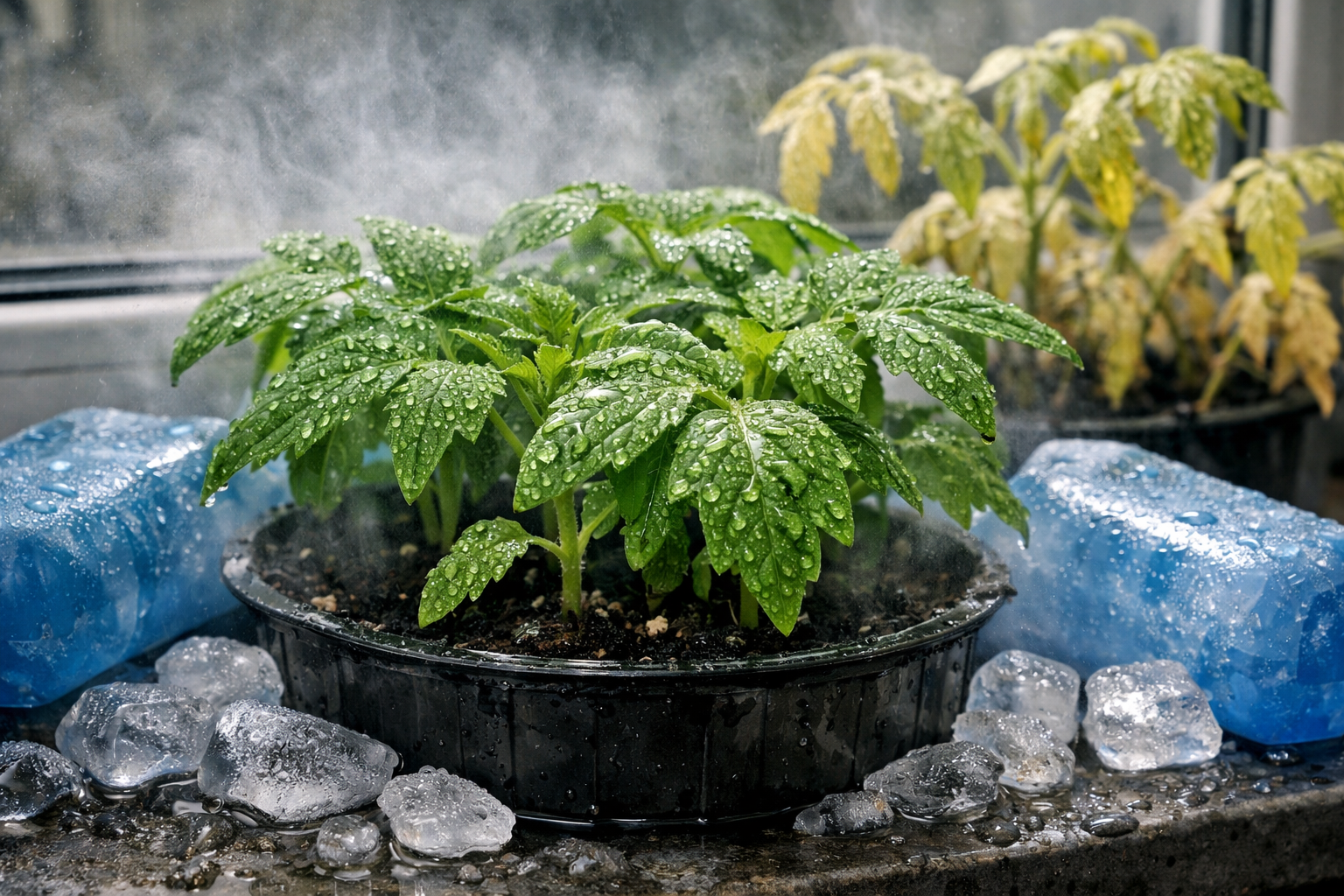 Amikor az ablakpárkányon a hőmérséklet egy bizonyos határérték fölé emelkedik, a paradicsom túlélési üzemmódba kapcsol. Ezen a ponton. fotoszintézis lelassul, és a korábban tárolt klorofill elkezd lebomlani. A növény túl sok nedvességet párologtat el, és a gyökereknek egyszerűen nincs idejük arra, hogy tápanyagot juttassanak a csúcsokba.