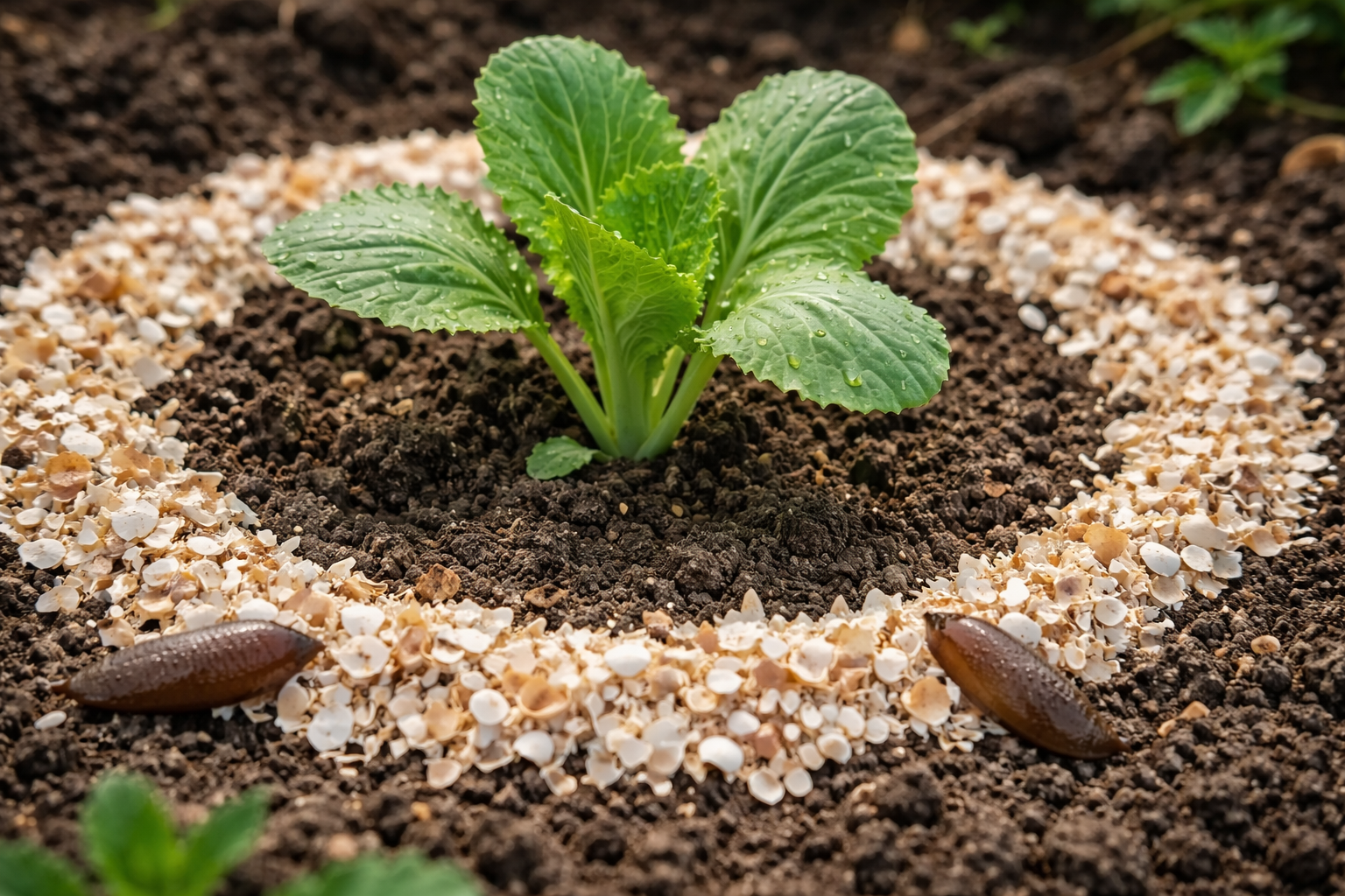 „Titkos árnyalat: szórjon védőréteget nemcsak maga a növény köré, hanem az ágyás teljes kerületére is, hogy kettős védelmi kört hozzon létre a kártevők vándorlása ellen.”