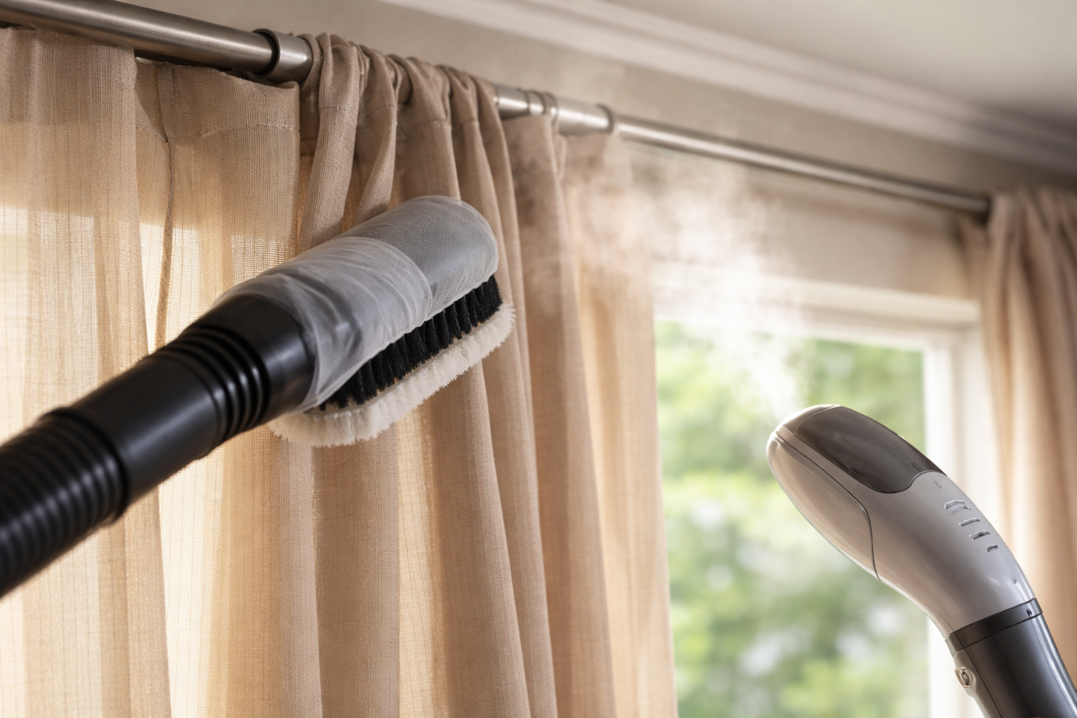 Fordítson különös figyelmet a mély redőkre, a drapériákra és a függönyrúd felső szélére, ahol a legtöbb por gyűlik össze.