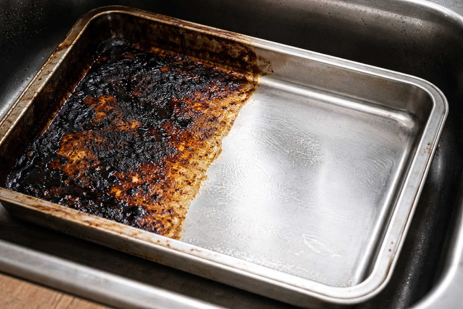 A tepsin lévő megszáradt zsír és fekete kéreg sokakat megijeszt, de ezeket fémflanellel lesikálni hiba, ami megöli a tapadásmentes réteget. Van egy egyszerű kémiai trükk alapvető házi szerekkel, amely szó szerint a szemed láttára bontja le a legmakacsabb kormot is.