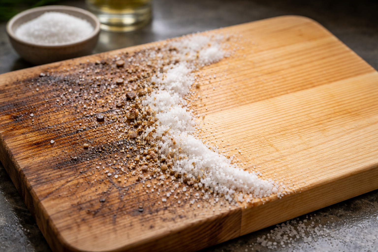 A fa porózus szerkezetű. A hagyományos tisztítószerek csak a felszíni zsírt mossák le, az ételekből származó baktériumokat és nedveket pedig mélyen a rostok közé zárják. A szennyeződések kiszedéséhez a következőkre van szükségünk természetes nedvszívó anyagok és élelmiszersavak.