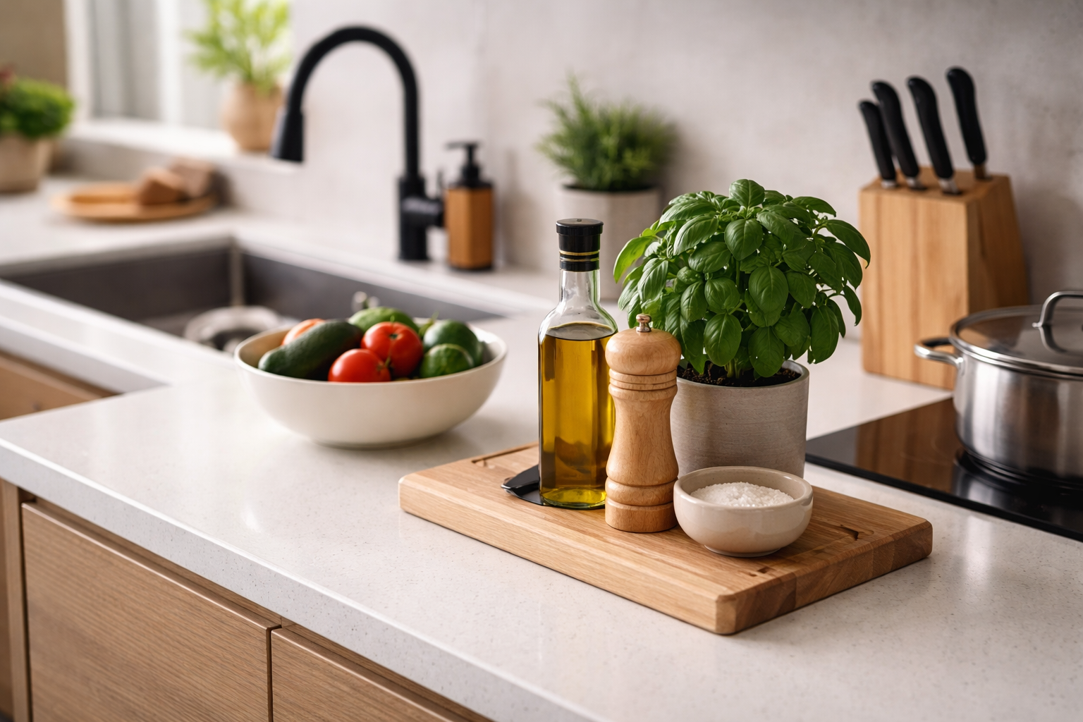 A titok: távolítson el mindössze három plusz tárgyat a konyhai munkalapról, és észre fogja venni, hogy a vacsora elkészítése többé nem tűnik házimunkának.