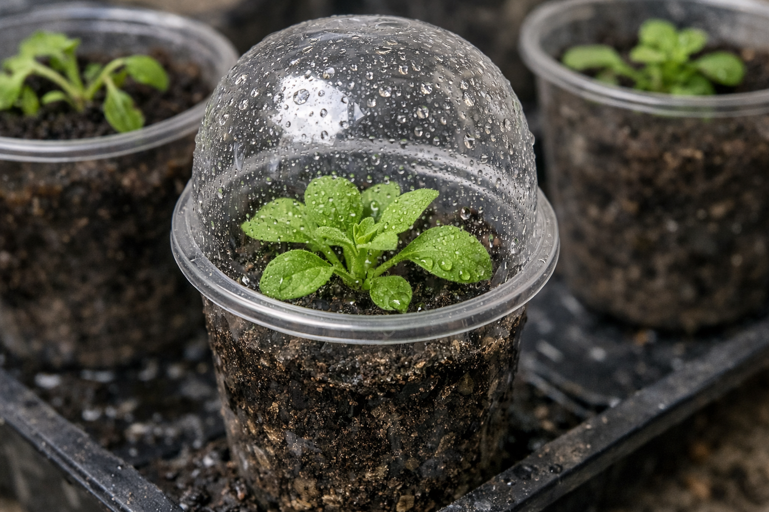 Fedje le az egyes palántákat egy átlátszó műanyag csuklyával vagy fóliával.