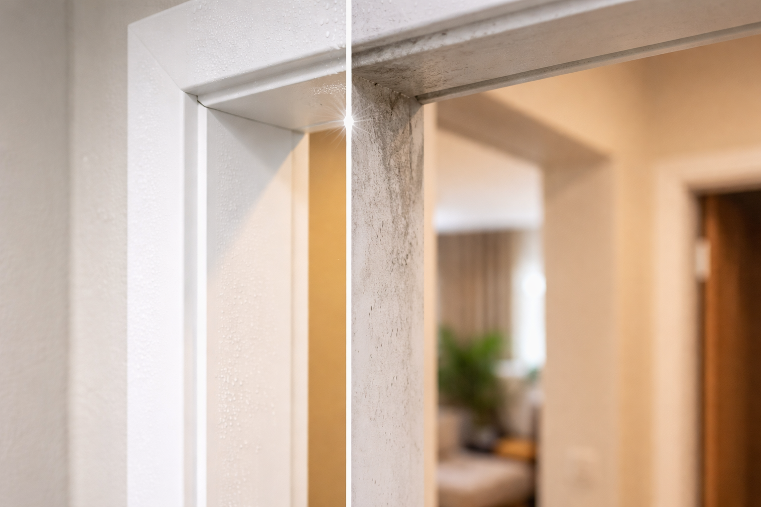 Az ajtókereteken lévő feltűnésmentes, szürke patinás réteg elrontja a belső tér összképét, és az ápolatlanság érzetét kelti. Rendszeresen felmossuk a padlót és letöröljük a szekrényfrontokat, de teljesen megfeledkezünk a függőleges síkokról, amelyek a szobák bejáratát keretezik. Ezek a területek felhalmozódnak finom portelepüljön le allergének és a háziállatok szőre.