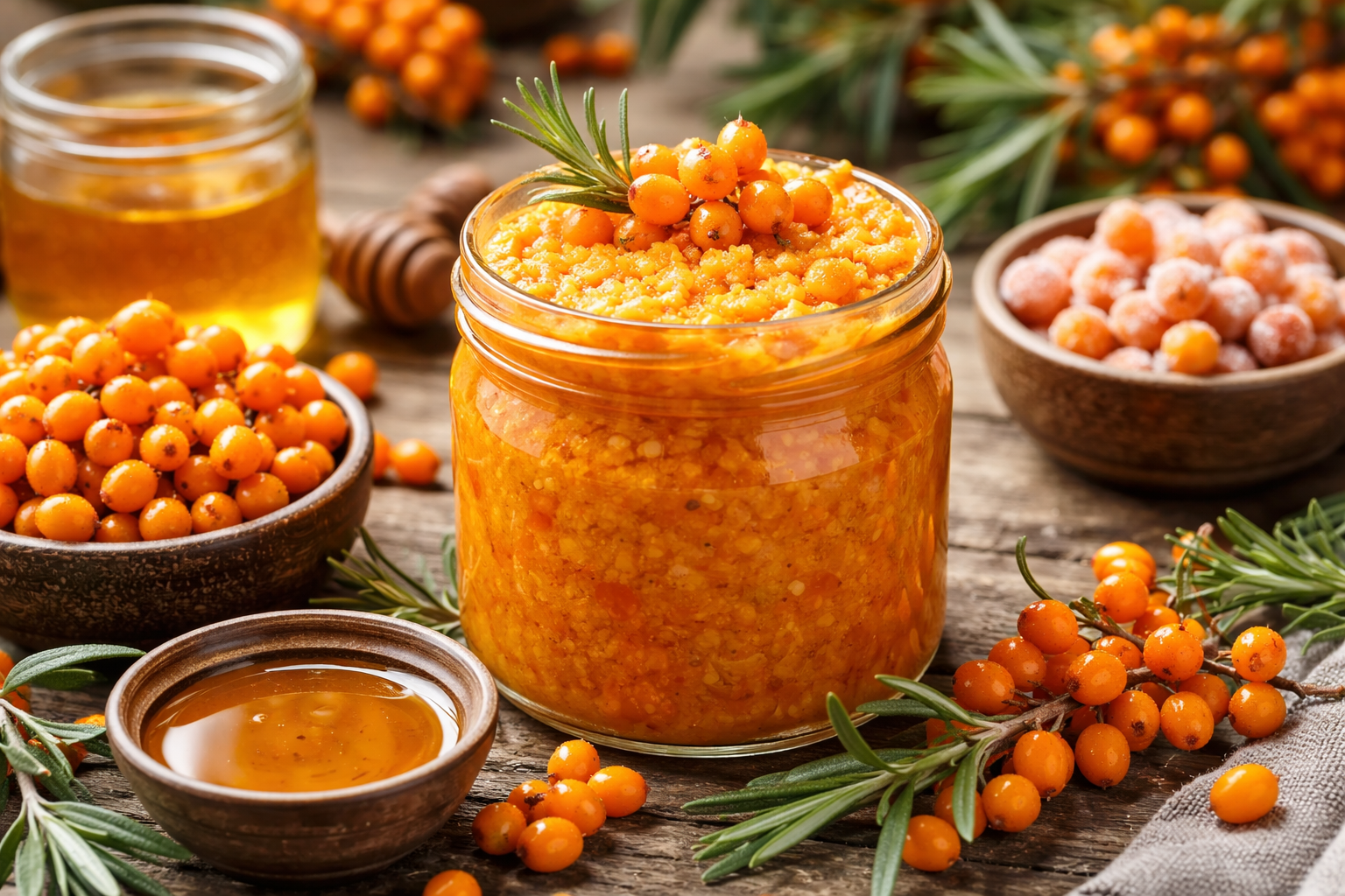 A homoktövis jól működik más természetes összetevőkkel szinergiában. Összeállítottam egy kis puskát a legjobb kombinációkról a házi italokhoz.