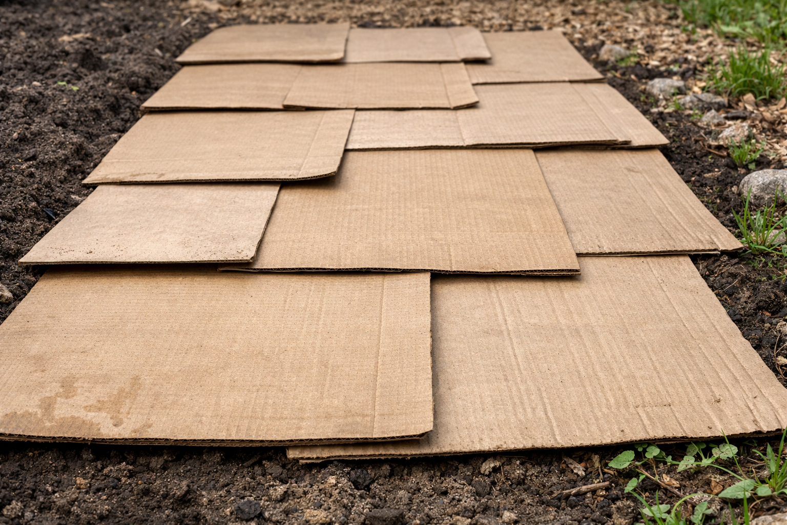 „A titok: ha áprilisban közvetlenül a fiatal fűre terítjük a kartont, júniusra tökéletesen laza, ültetésre kész talajunk lesz, egyetlen gyomnövény nélkül.”