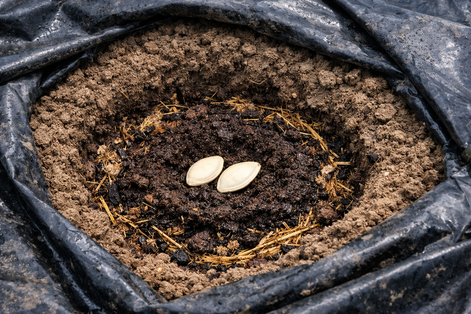 Az erőteljes indítás legfontosabb titka, hogy az előkészített gödröt ültetés előtt néhány nappal sűrű fekete fóliával fedjük le, ami lehetővé teszi, hogy a talaj a mélyben felhalmozza a nap hőjét.