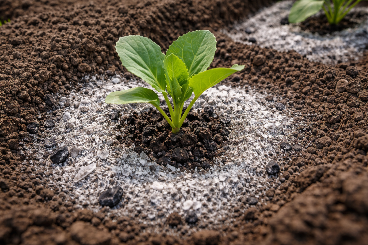 Az ágyások oxidációmentesítése fahamu néhány héttel a palánták átültetése előtt.