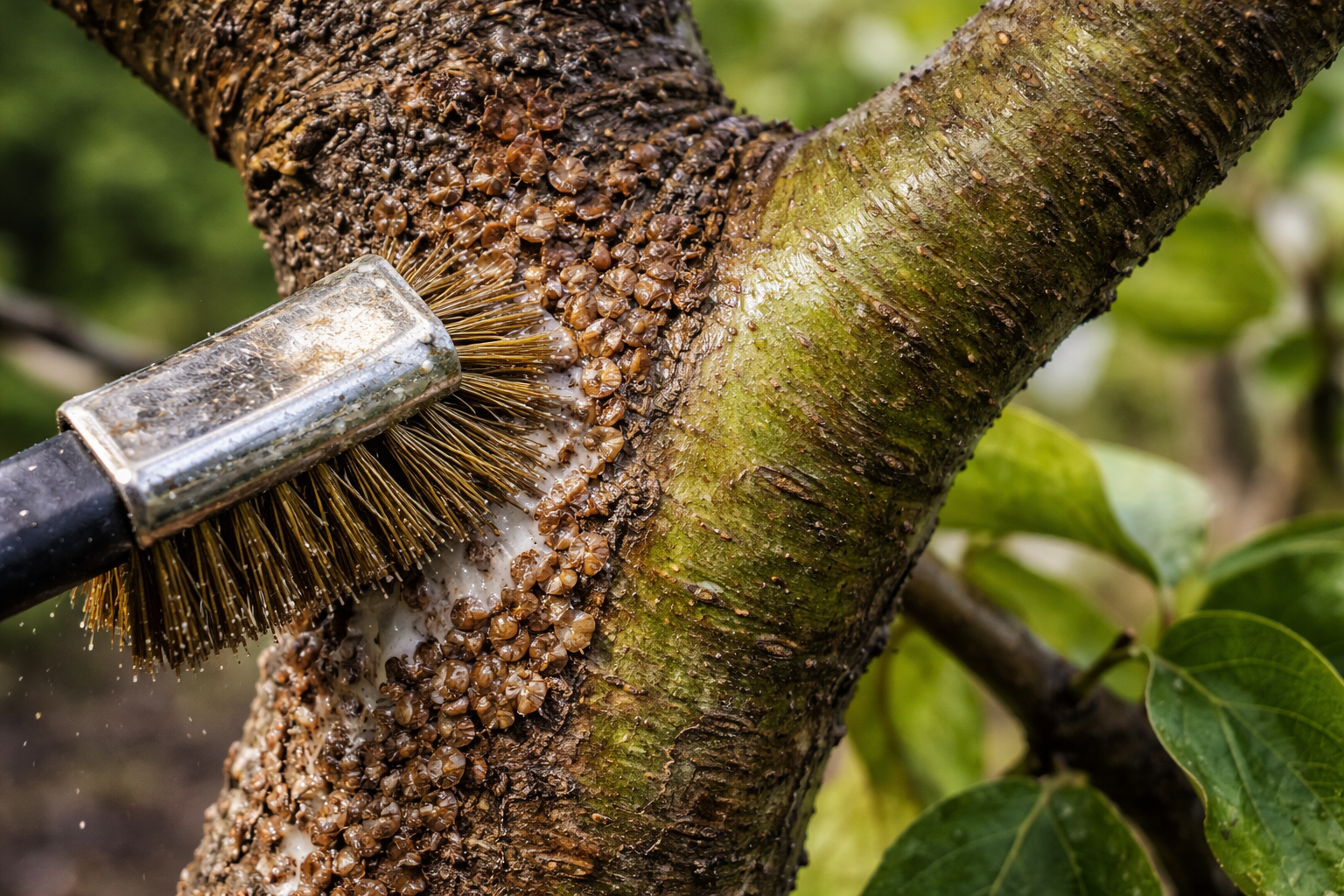 „A meszelés a napégés ellen megelőző intézkedés, de a már megtelepedett pajzstetű ellen gyakorlatilag haszontalan.”