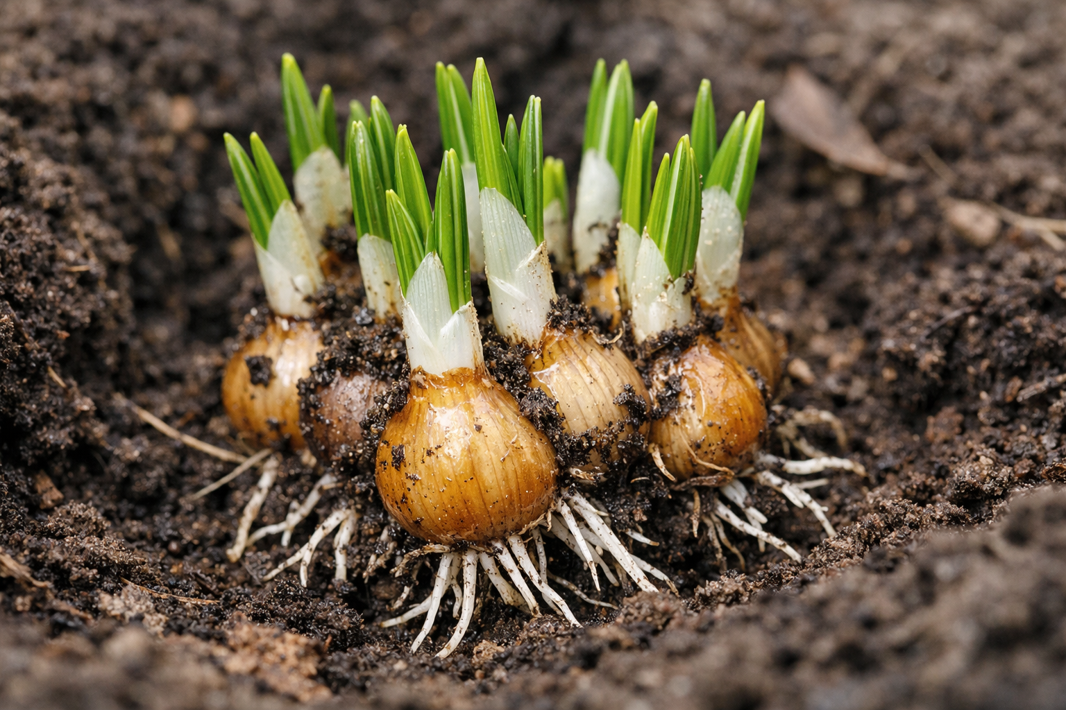 Néha a túl mélyre ültetés okoz problémát. Árnyékos területeken azt javaslom, hogy a hagymákat kicsit közelebb ültessük a felszínhez, mint a napos területeken, hogy a hő gyorsabban elérje őket. termesztési pontok.