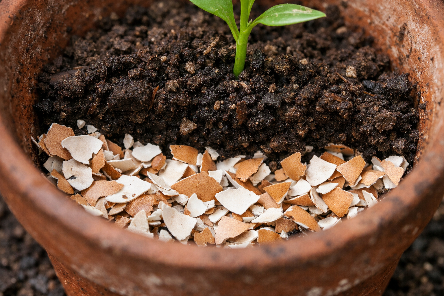 „A titkos árnyalat: ahhoz, hogy a kagylóhéj drénként működjön, és ne csak a talajjal keveredjen, ne zúzzuk túl finomra. Elég egy egész tojást a tenyerünkkel kissé összezúzni, hogy egy-két centiméteres darabkákat kapjunk”.