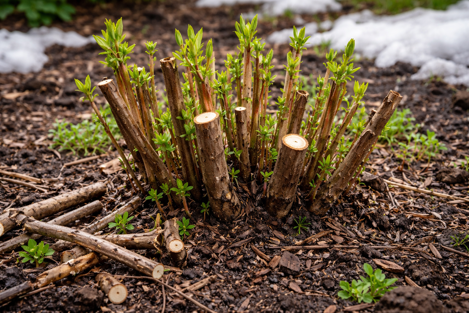 A középső sáv rövid nyári viszonyai között fontos, hogy a növény a felesleges faanyag eltávolítása után gyorsan regenerálódjon. A tapasztalt kertészek kerülik az agresszív kémiai serkentőszerek használatát. A szokásos fahamua bokrok köré szórva és a felső talajba beépítve biztosítja a gyökérzet számára a szükséges káliumot. Ez teljesen elegendő a bokor támogatásához az aktív rügyfakadás időszakában.