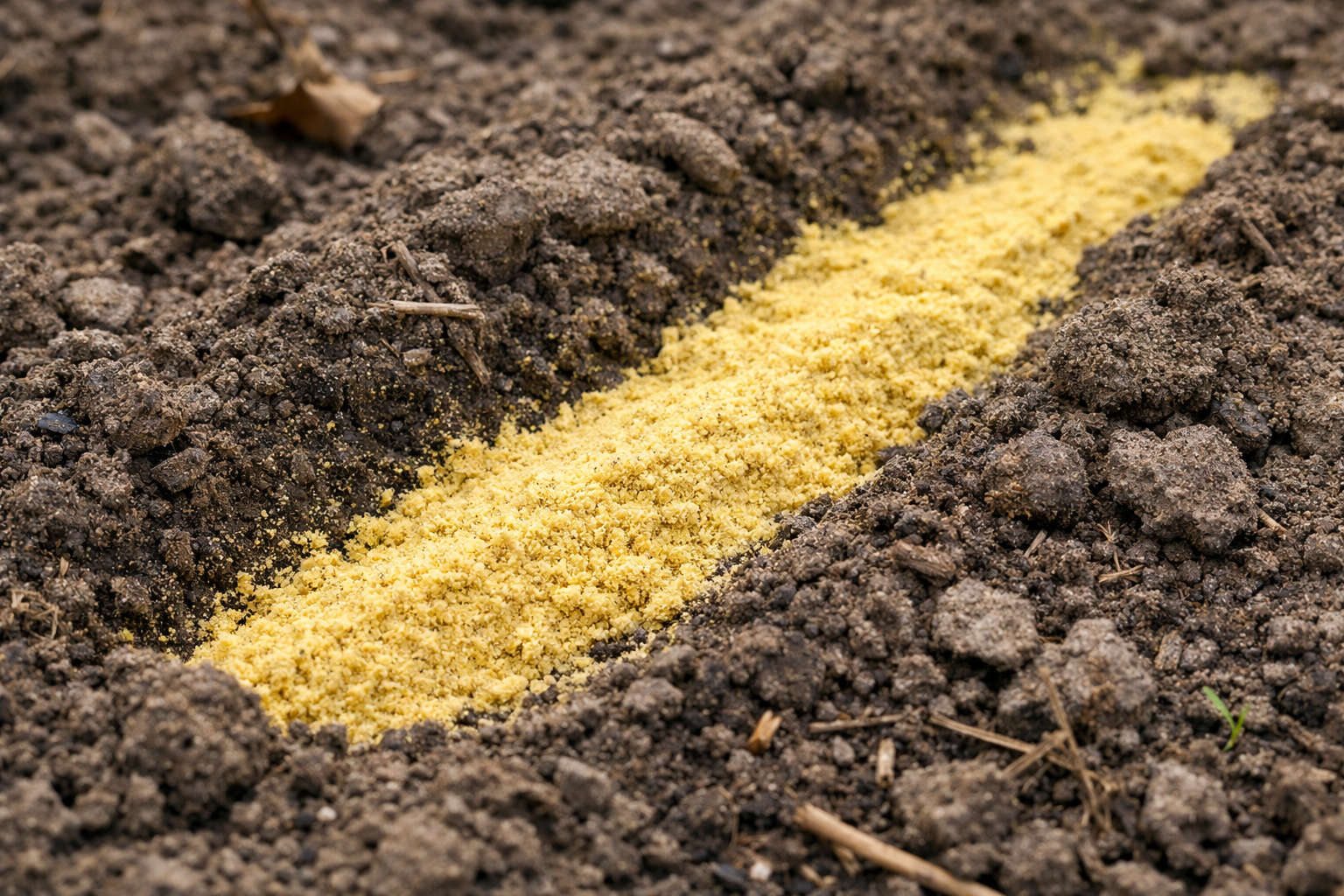 A mustárport ültetéskor közvetlenül a lyukakba öntjük.
