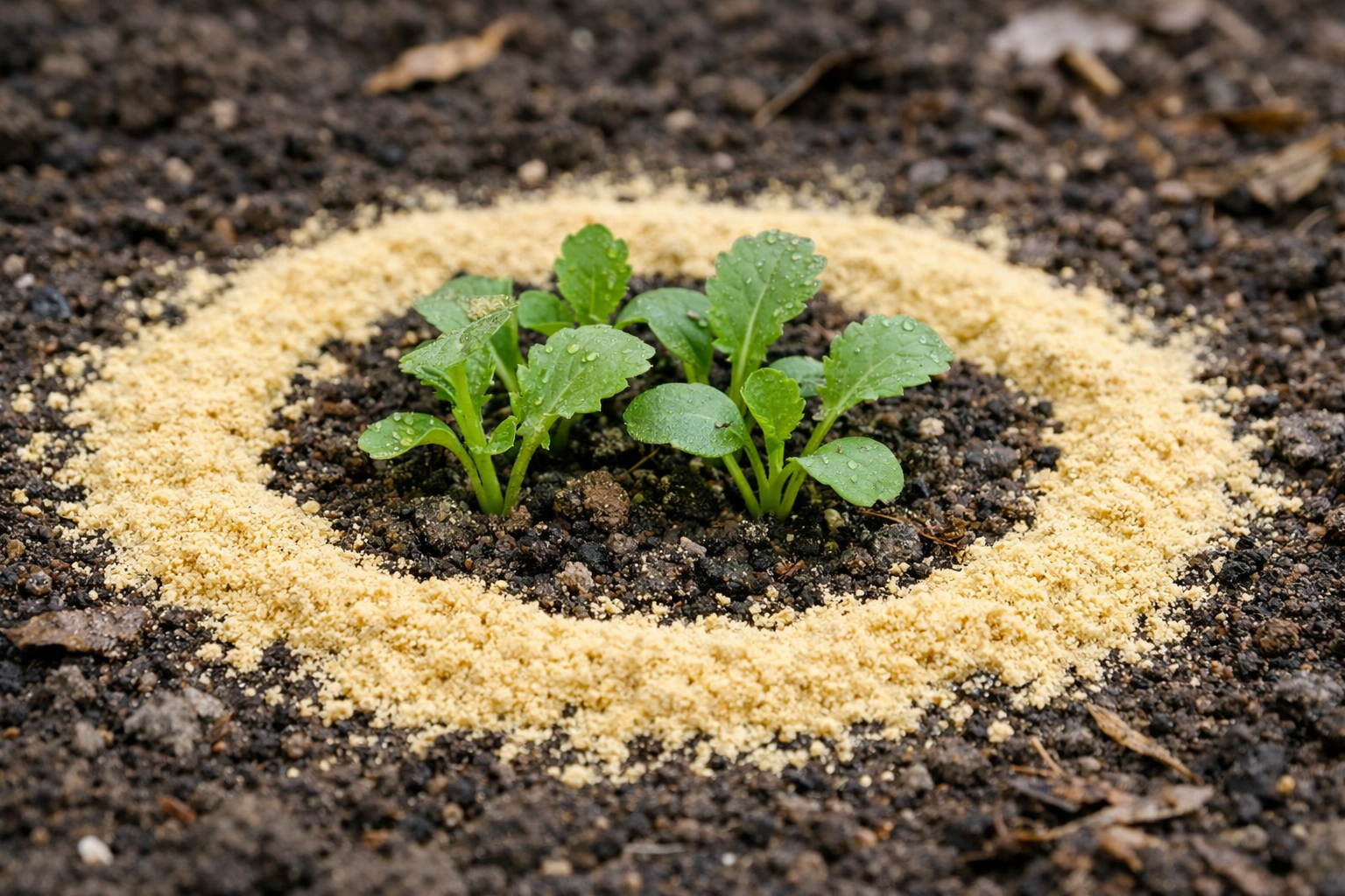 Szárazan terítsük mustárpor egyenletes, körülbelül öt centiméter széles rétegben minden ágyás kerületén.