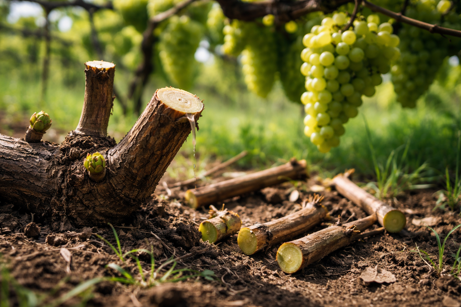 A szőlő egyedülálló öngyógyító tulajdonsággal rendelkezik, így a vágások további kezelése nem szükséges.